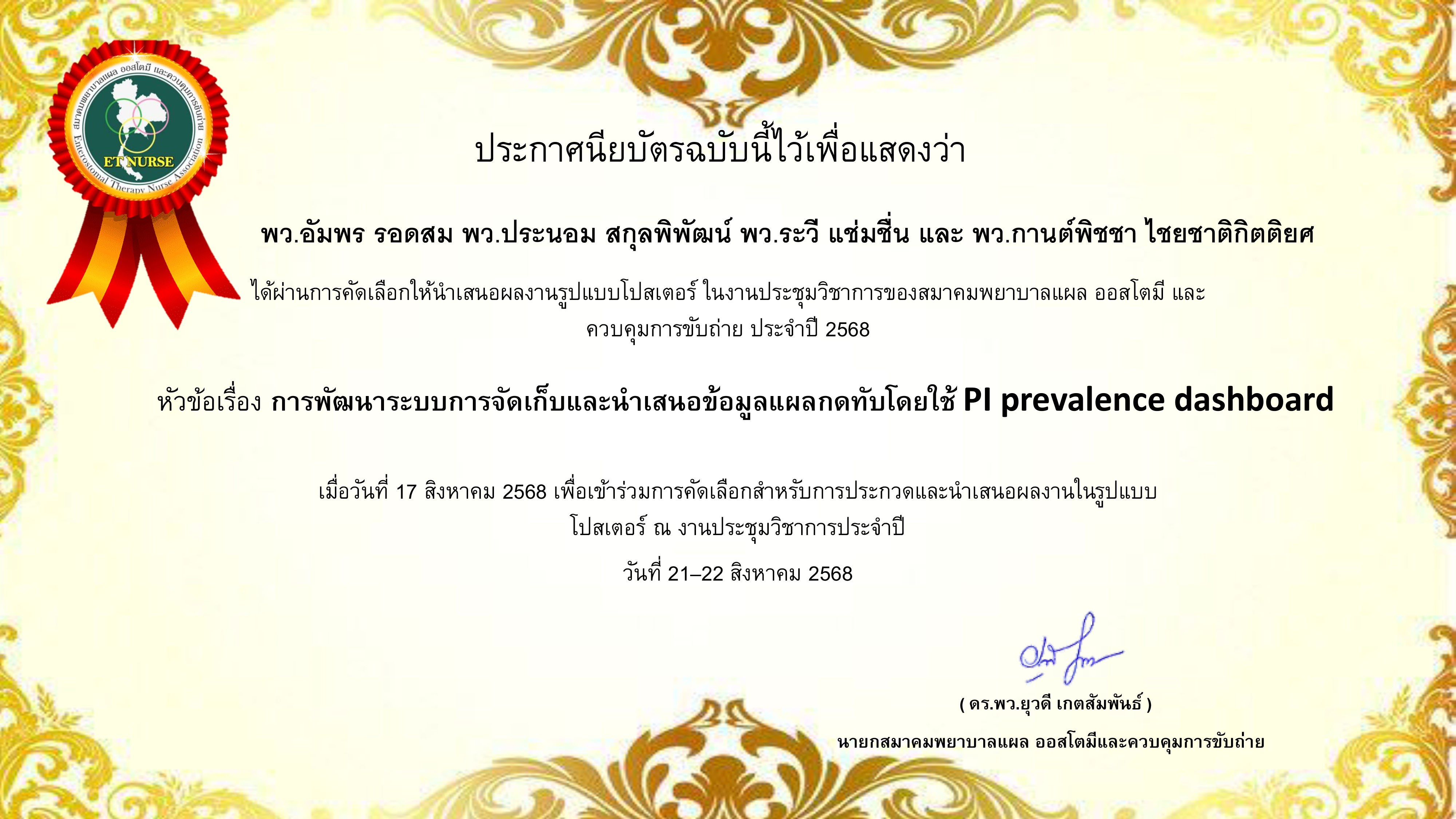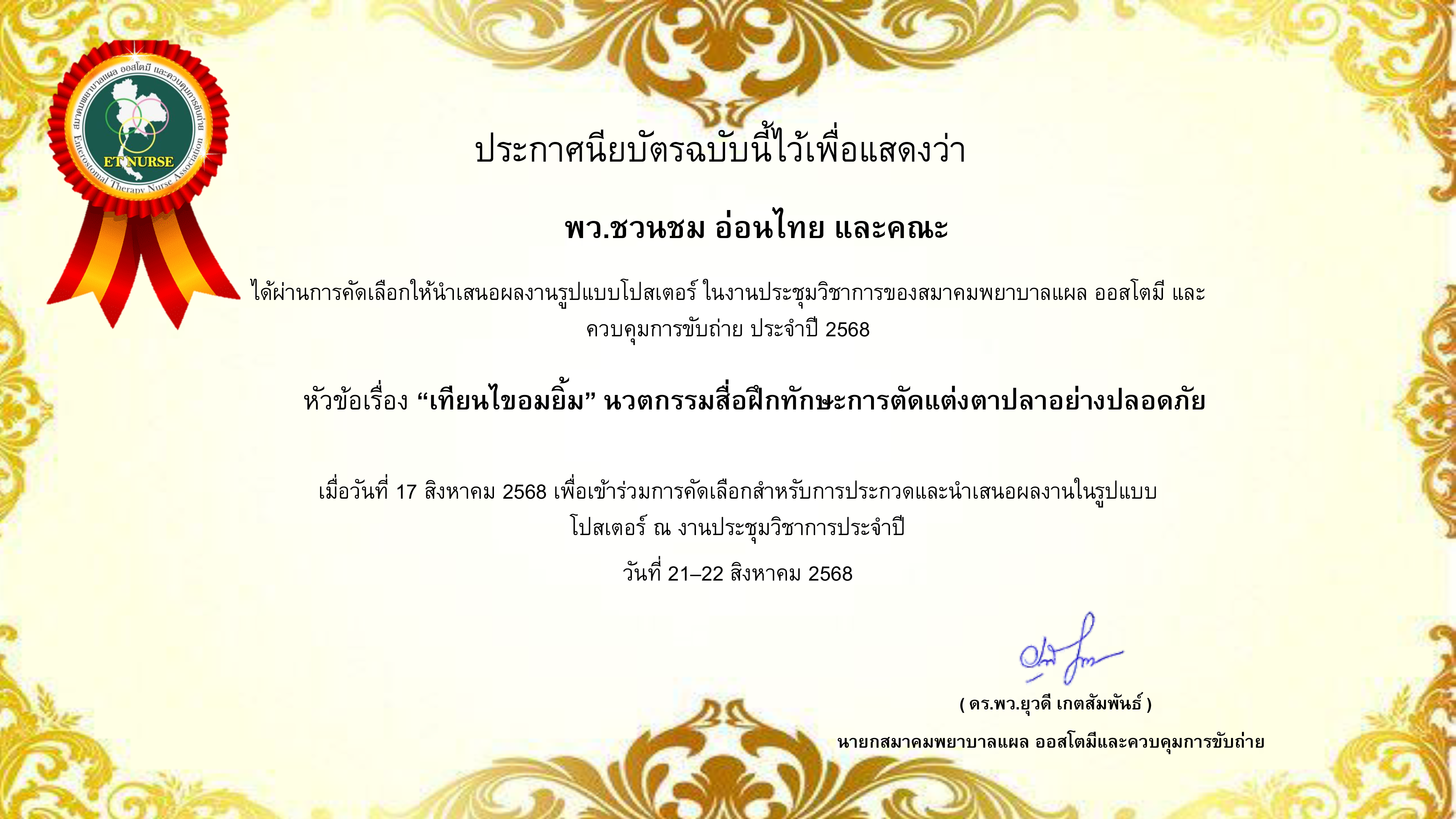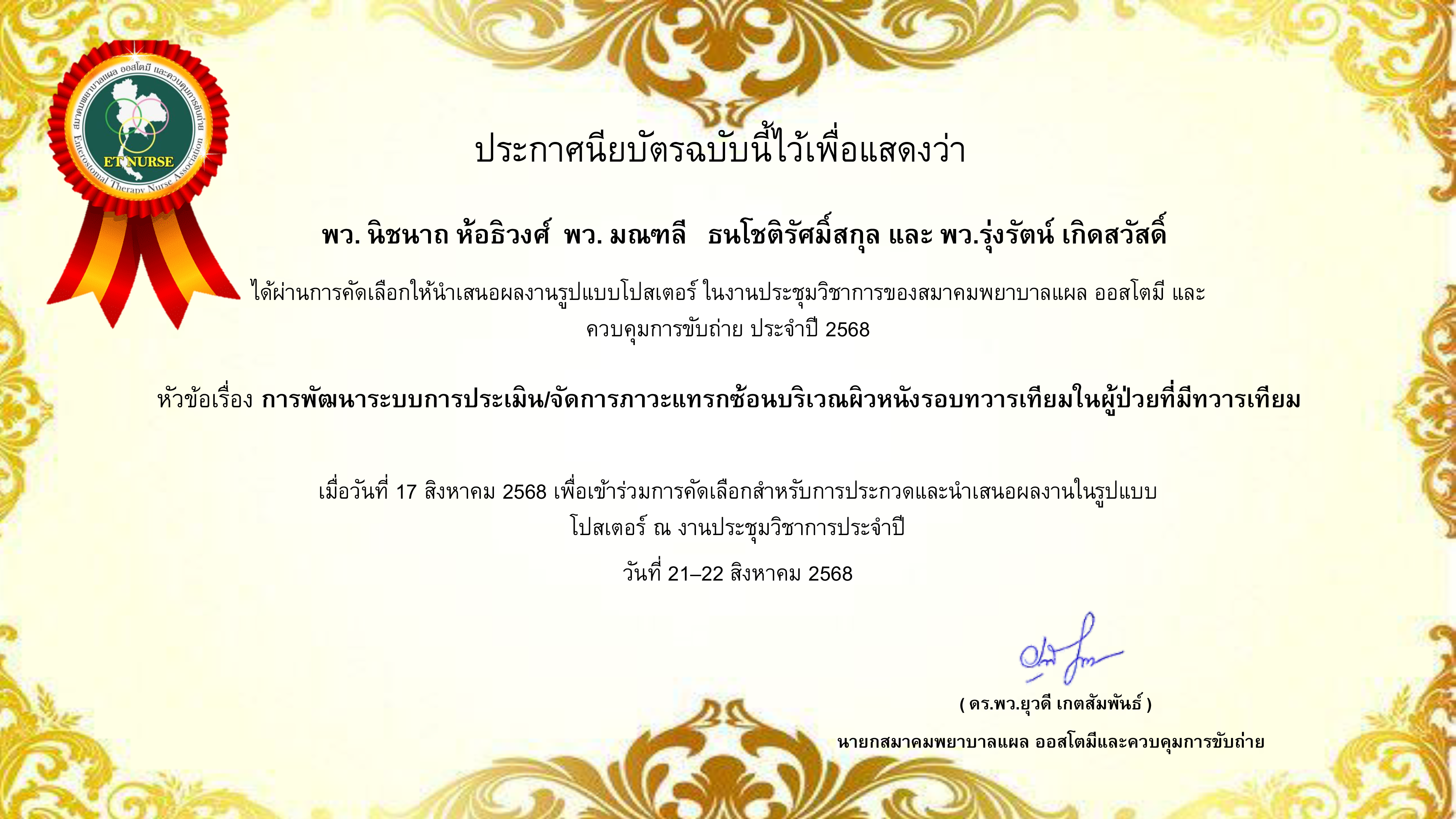 ดาวน์โหลดใบประกาศนียบัตรสำหรับผู้ที่ได้นำเสนอผลงาน poster present รอบคัดเลือก ประจำปี 2568