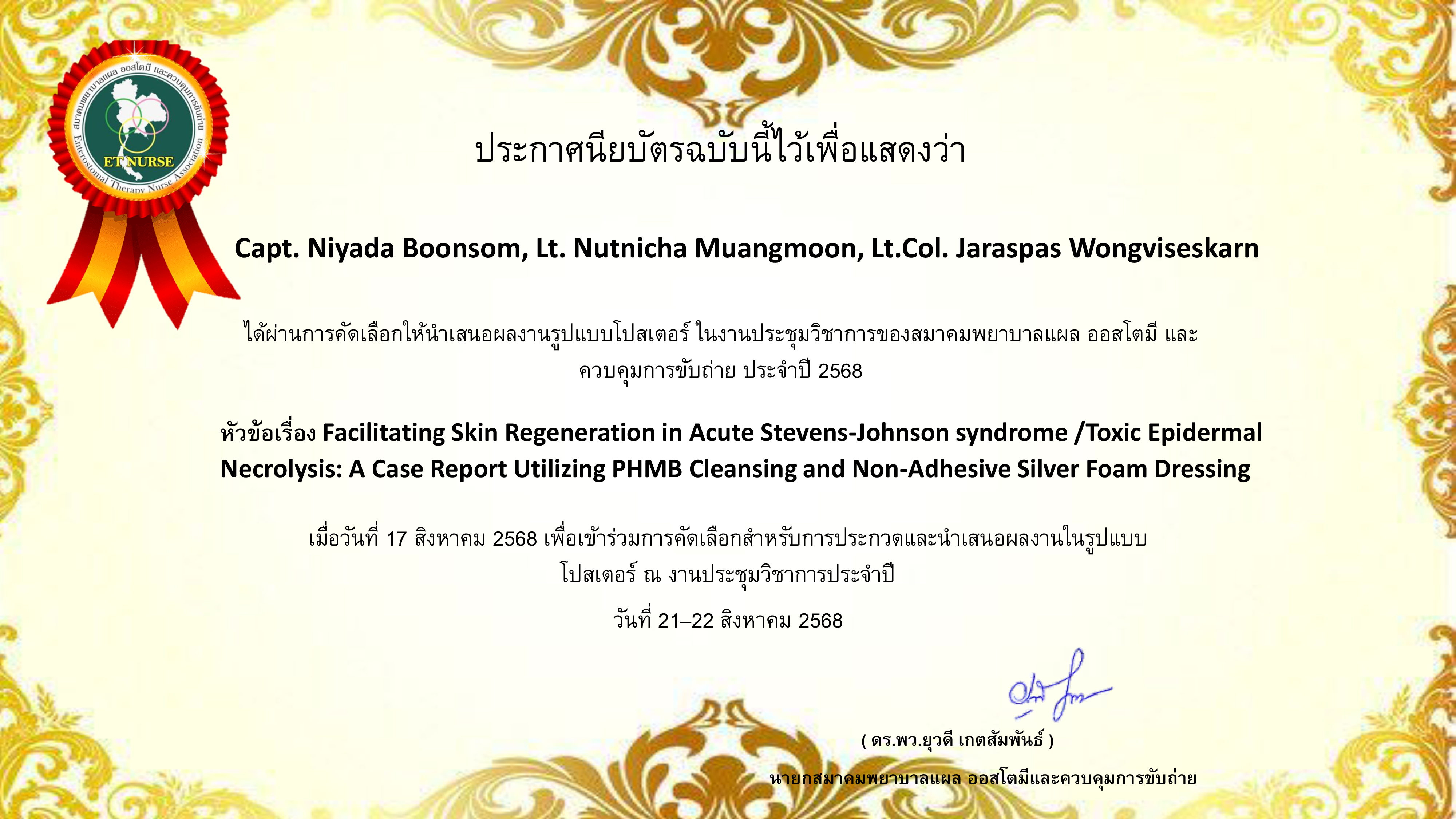 Phramongkutklao Hospital | Facilitating Skin Regeneration in Acute Stevens-Johnson syndrome/Toxic Epidermal Necrolysis: A Case Report Utilizing PHMB Cleansing and Non-Adhesive Silver Foam Dressing | Download |