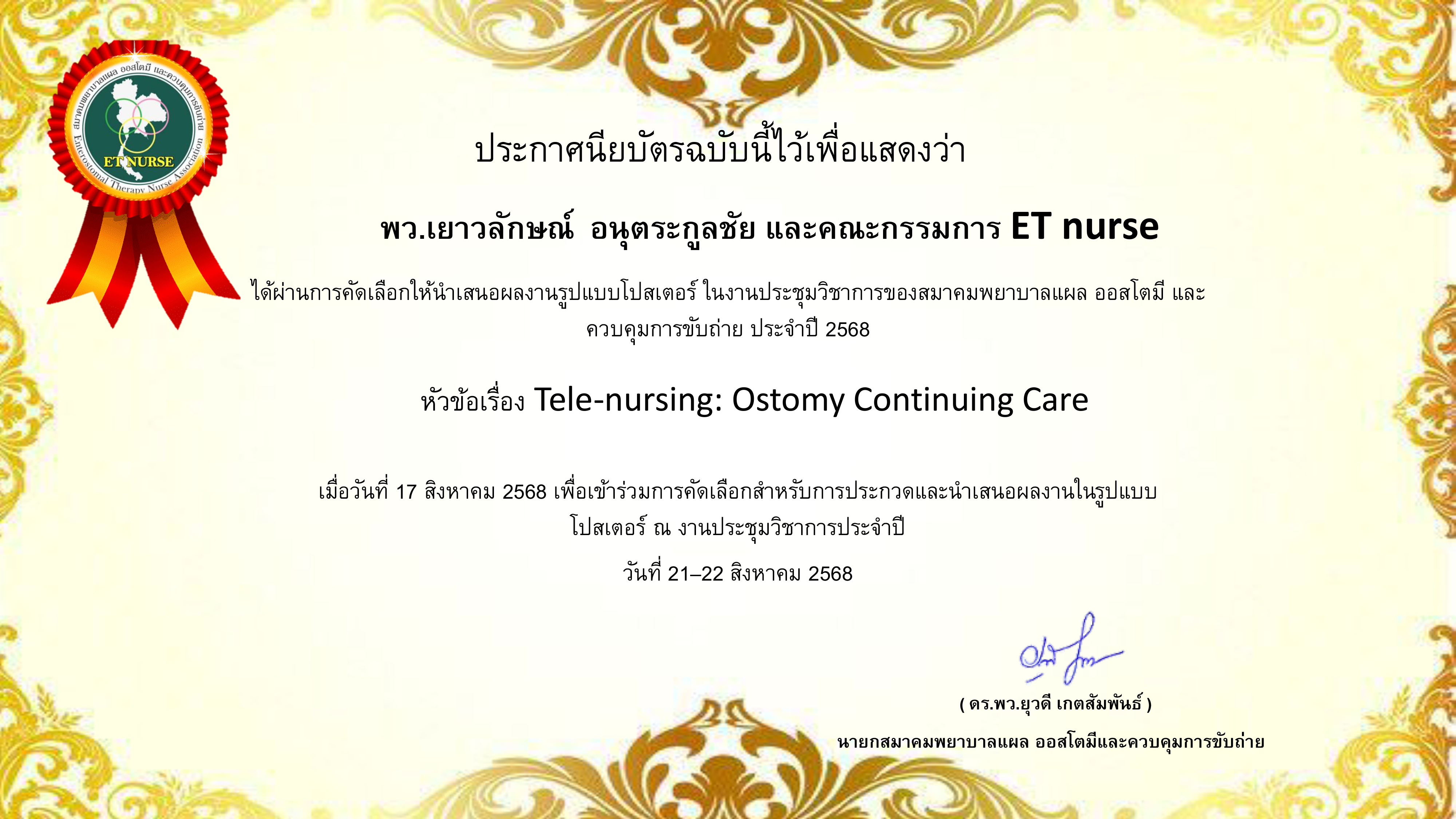 | 8 | พว.เยาวลักษณ์ อนุตระกูลชัย และ คณะกรรมการ ET nurse |